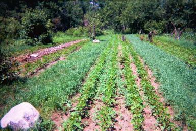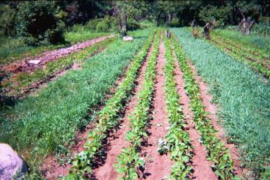 (Note: Terrace of clover on left and newly planted snap bean on right where lettuce once grew.)