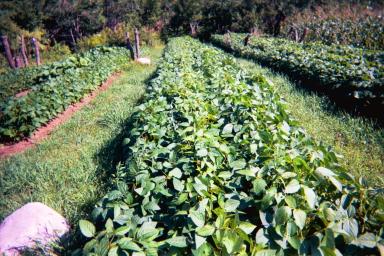 Soybeans Before Weeding (Note Weeds Between Rows)